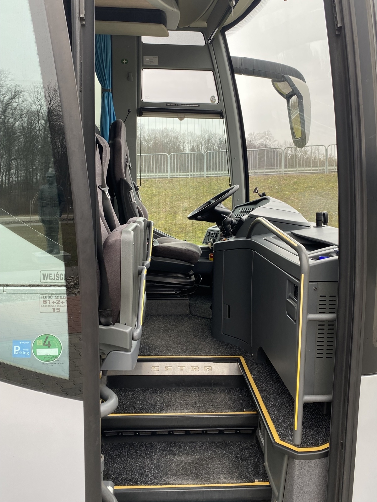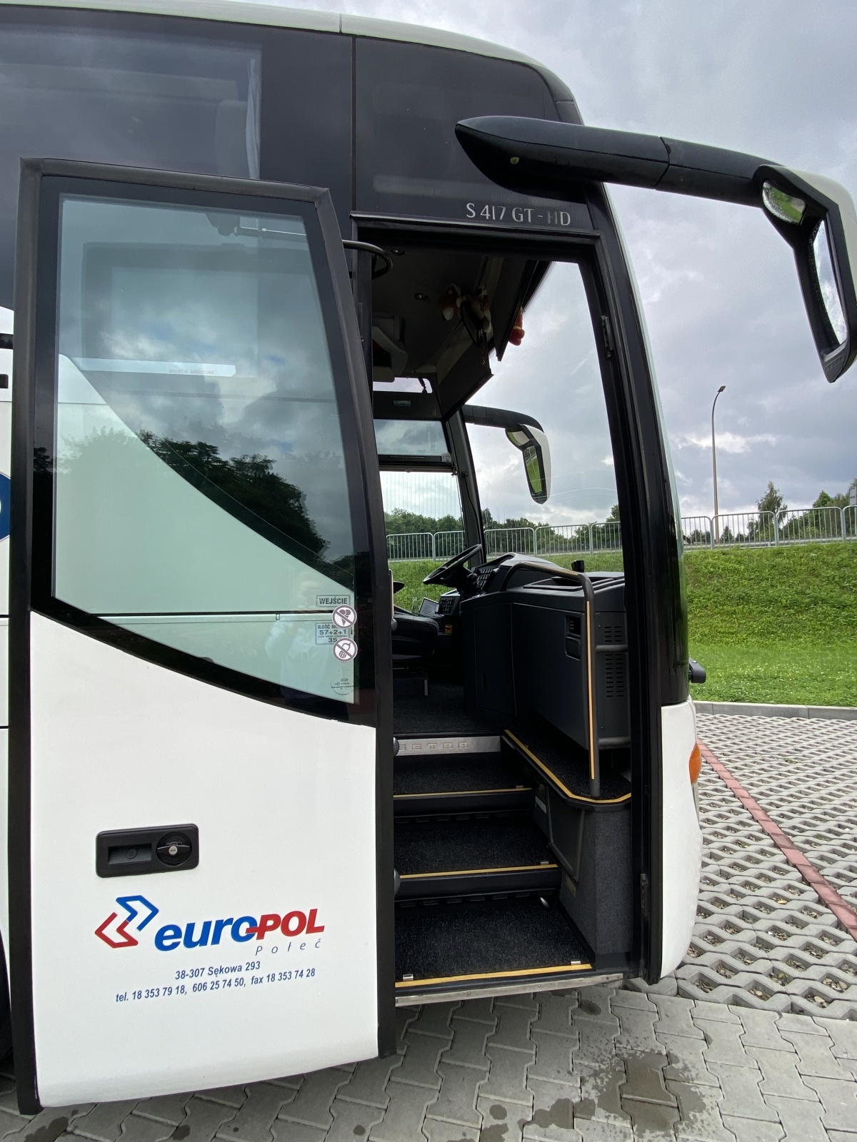Setra S 417 to model preferowany przez przewoźników obsługujących wymagające wyjazdy wielodniowe – wydłużona konstrukcja zapewnia większą liczbę miejsc i przestrzeń na bagaże, a wysoki pokład gwarantuje pasażerom lepszą widoczność. Wnętrze wyposażone w rozsuwane, odchylane fotele z pasami, indywidualne nawiewy i lampki LED, wydajną klimatyzację oraz toaletę sprzyja komfortowi w długiej podróży. System audio‑video (monitory / media player), mikrofon dla pilota, barek / lodówka i opcjonalny ekspres podnoszą standard. Systemy ABS, ASR, ESP, retarder i (w nowszych rocznikach) zaawansowane asystenty hamowania wspierają bezpieczeństwo i płynność jazdy.